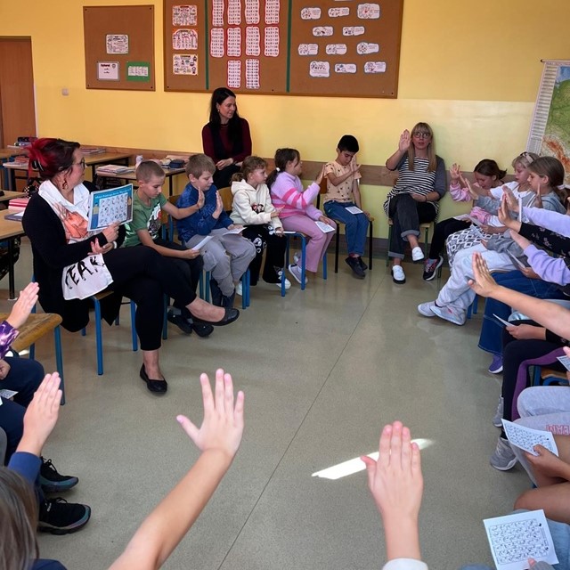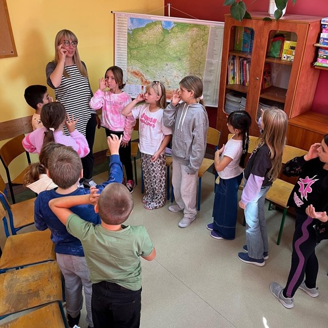 Dzieci z dużym zaangażowaniem uczyły się znaków, dzięki którym mogą się przywitać, podziękować czy przedstawić. Wspólna nauka była nie tylko ciekawym doświadczeniem, ale także piękną lekcją tolerancji i otwartości na drugiego człowieka.