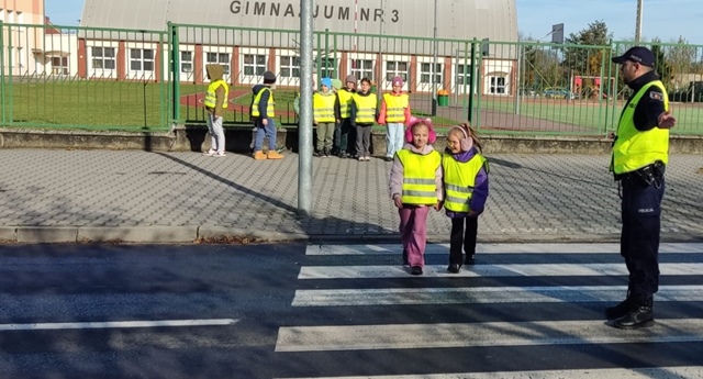 "Bezpieczna droga do szkoły" to hasło przewodnie spotkania z Panem Łukaszem Celińskim - policjantem KPP w Świebodzinie. Podczas zajęć uczniowie klas 1a i 1c utrwalili zasady poruszania się po chodniku oraz przejścia przez jezdnię.