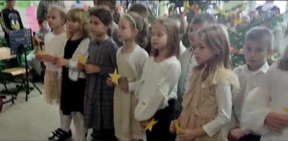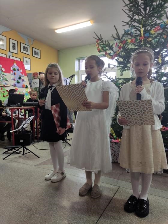 Tradycyjnie przy akompaniamencie gitary uczniowie wraz z p. Grzegorzem Aleksiewiczem wykonali znane bożonarodzeniowe utwory m.in. „Jingle Bells”, „Świeć Gwiazdeczko” i „Przybieżeli do Betlejem”.