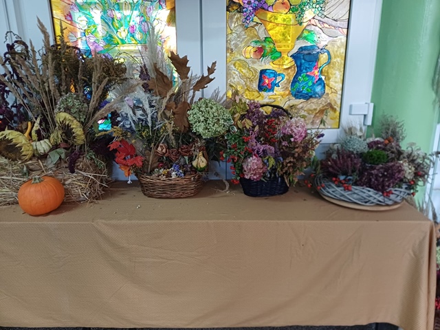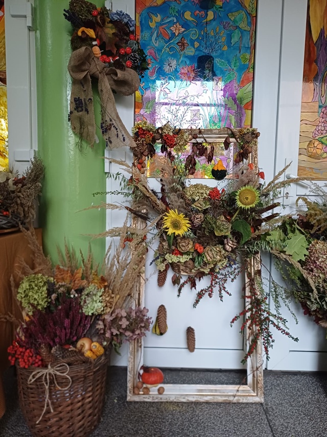 Bukiety pełne barw, liści, owoców, kwiatów oddawały piękno jesiennej natury.