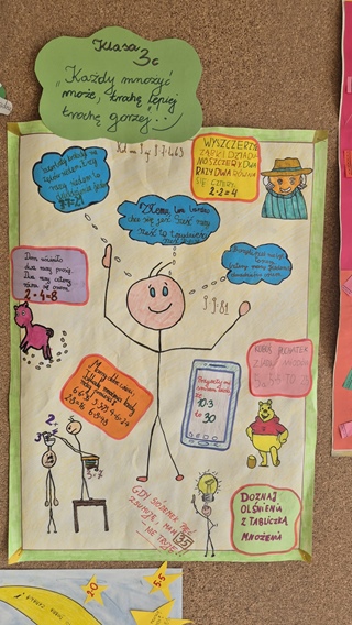 Egzaminatorami byli przedstawiciele z klas 4, który zaopatrzeni w losy przepytywali kolegów z klas starszych oraz dorosłych. Klasy 3 oraz 4 z naszej szkoły przygotowały również plakaty ze śmiesznymi wierszykami promujące tabliczkę mnożenia. Wszystkie klasy przygotowując swoje prace wykazały się kreatywnością i świetnymi pomysłami. Postanowiliśmy nagrodzić klasę 4c za swój plakat, klasa otrzyma paczkę słodyczy. Mamy nadzieję, że ta forma zabawy była doskonałym przypomnieniem tabliczki mnożenia. Dziękujemy wszystkim biorącym udział za zaangażowanie.