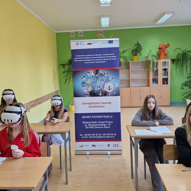 W bieżącym roku szkolnym nasi uczniowie wzięli udział w kosmicznej podróży'' w świat zawodów przy użyciu okularów Gogle Vr. W organizacji spotkania pomógł nam Wojewódzki Urząd pracy w Zielonej Górze, ich pomoc była bezcenna.