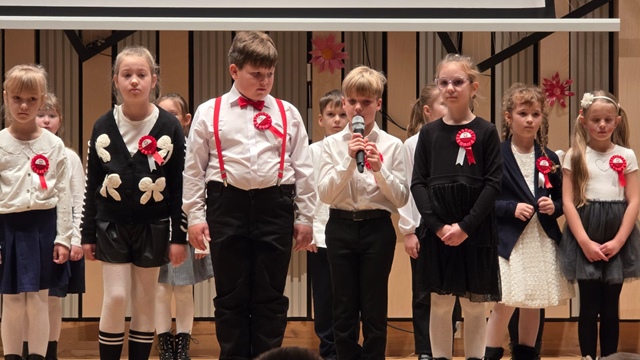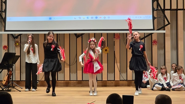 Wyjątkowym punktem programu były teatralne aranżacje wierszy o tematyce niepodległościowej, przygotowane przez uczniów klas starszych oraz niezwykle zaangażowaną klasę 2c. Sceniczne interpretacje dostarczyły wielu emocji i pozwoliły spojrzeć na patriotyzm w sposób artystyczny, symboliczny i poruszający.