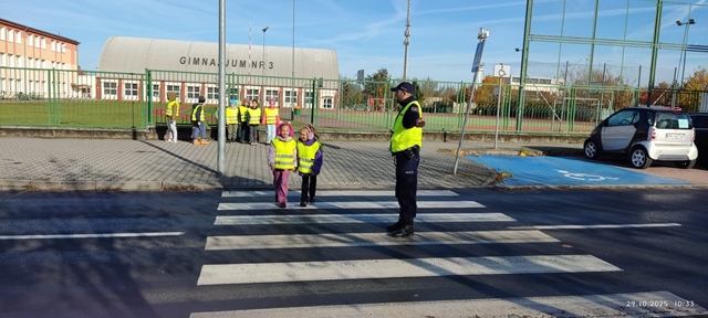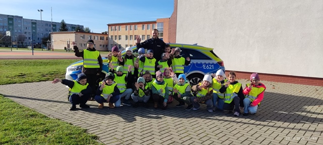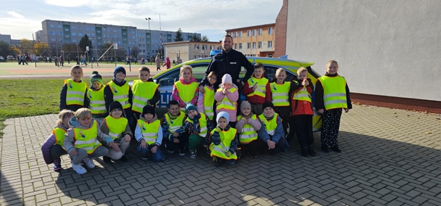 "Bezpieczna droga do szkoły" to hasło przewodnie spotkania z Panem Łukaszem Celińskim - policjantem KPP w Świebodzinie. Podczas zajęć uczniowie klas 1a i 1c utrwalili zasady poruszania się po chodniku oraz przejścia przez jezdnię.